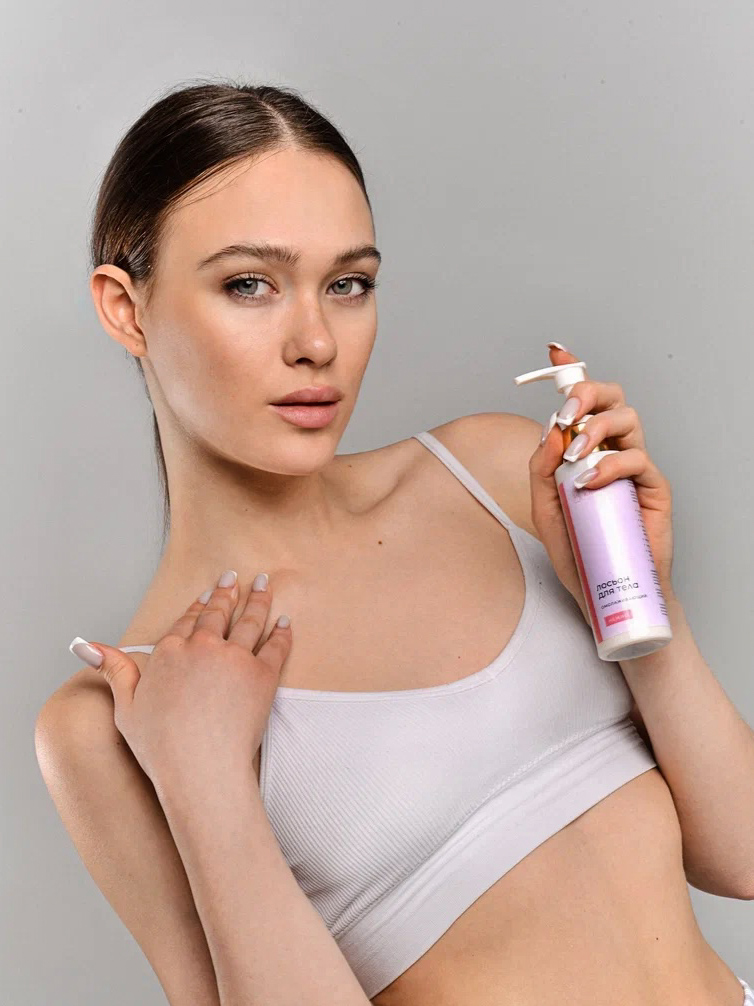 Нанесите средство на очищенную и сухую кожу тела, распределите легкими, массирующими движениями.