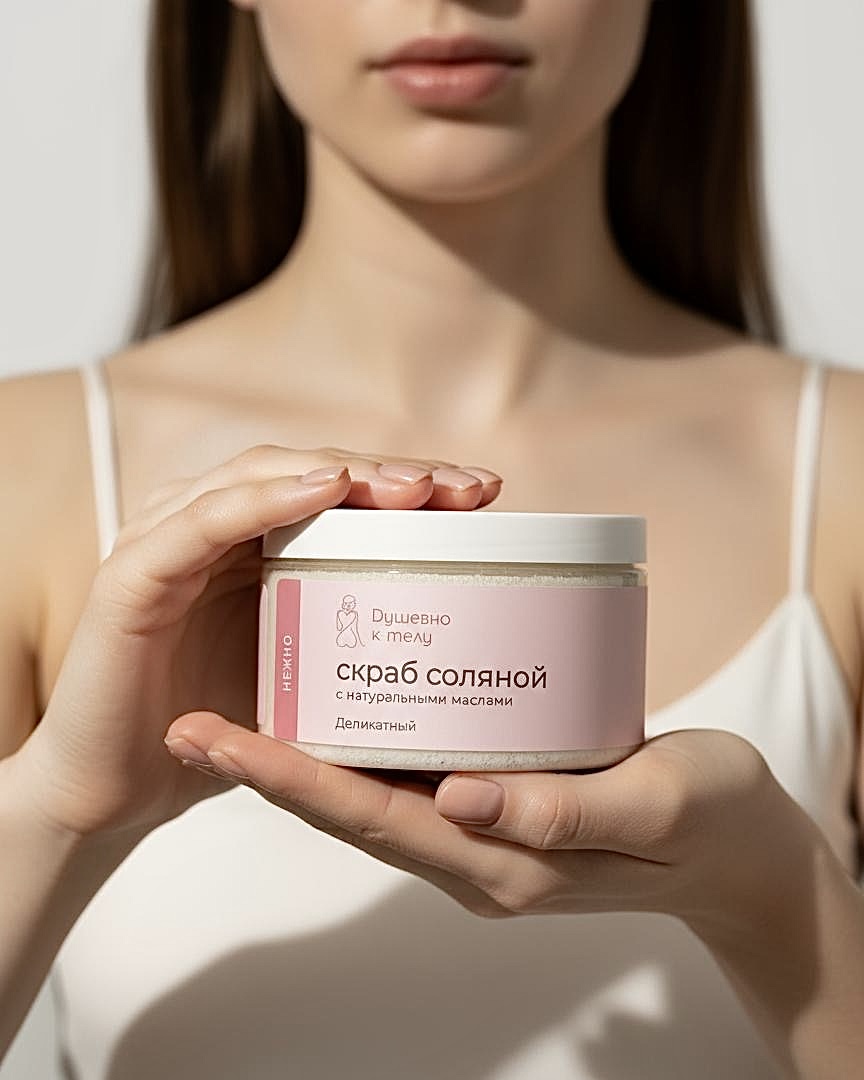 Морская соль мельчайшего помола деликатно и бережно отшелушивает роговые клетки с поверхности кожи, делая её гладкой, мягкой и упругой. Мягкое массажное действие во время процедуры усиливает кровообращение и лимфодренаж, уменьшая отёчность и устраняя дряблость.